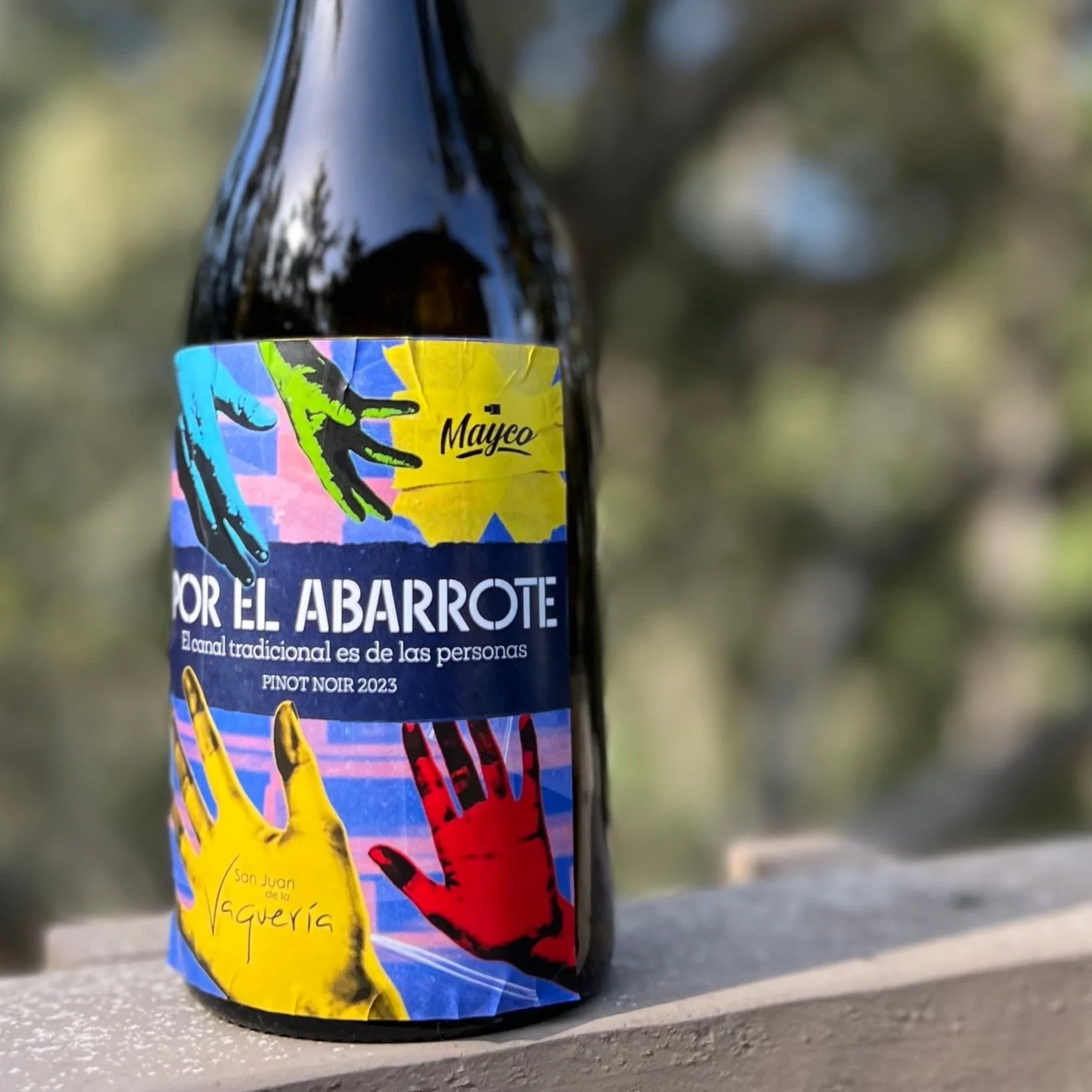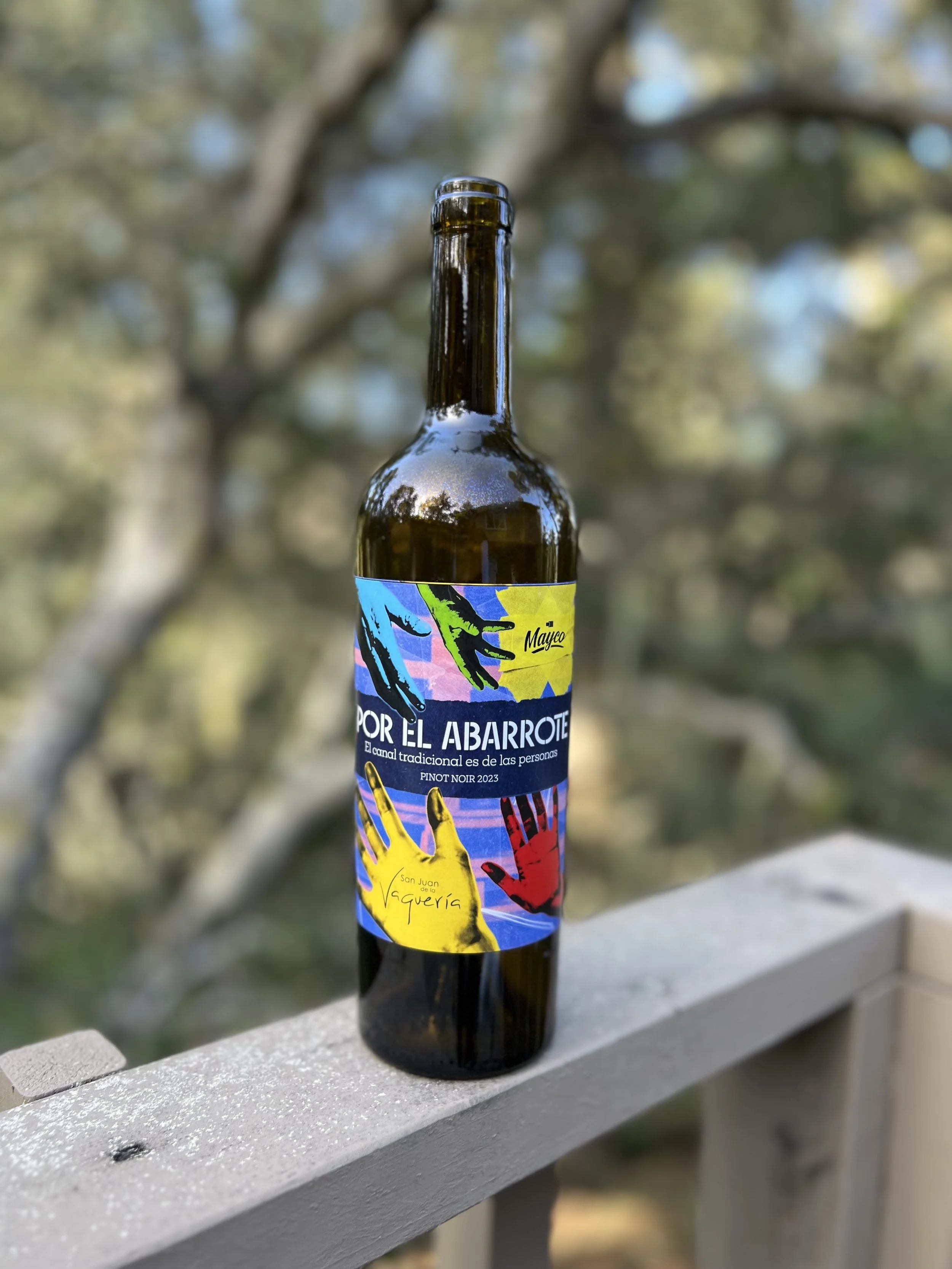 Create a label for a wine to be given to partners of Mayco. This business mainly provides services to “tienditas”, or corner stores, across Mexico.